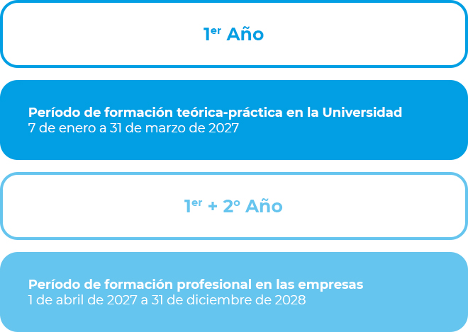Todos los alumnos que sean admitidos en el máster disfrutarán de una ayuda económica de la empresa a la que se incorporarán en el período práctico. Esta ayuda cubrirá el precio íntegro de la matrícula de los dos cursos académicos, así como una beca de 500 €/mes brutos durante los primeros tres meses de docencia teórica, 1000 €/mes brutos durante los siguientes nueve meses y de 1200 €/mes brutos durante todo el segundo año del máster.